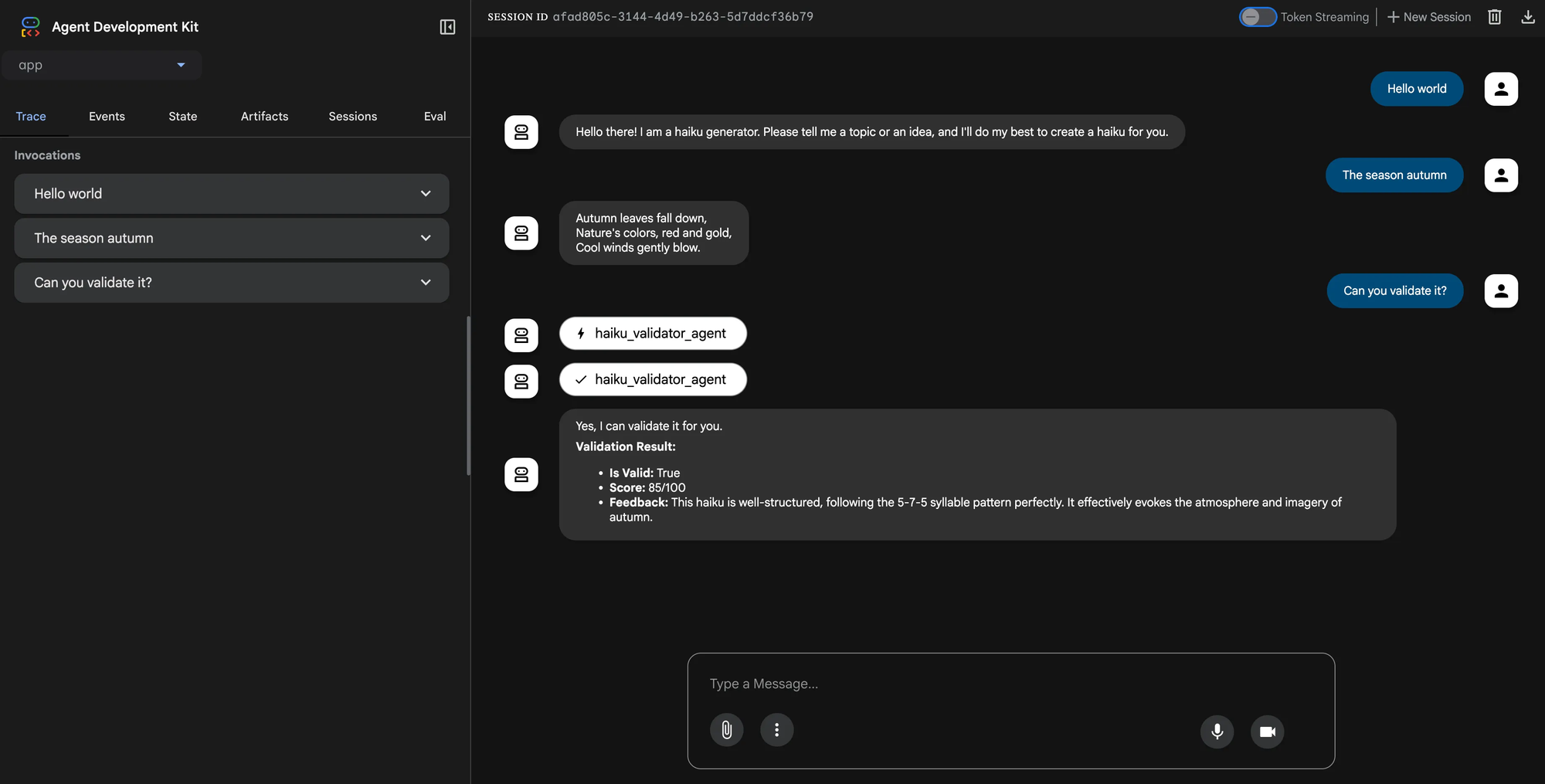 We’re going to create a haiku generator with the ADK. Our application will act as a conversational chatbot that will ask you for a topic, and generate a haiku about it.