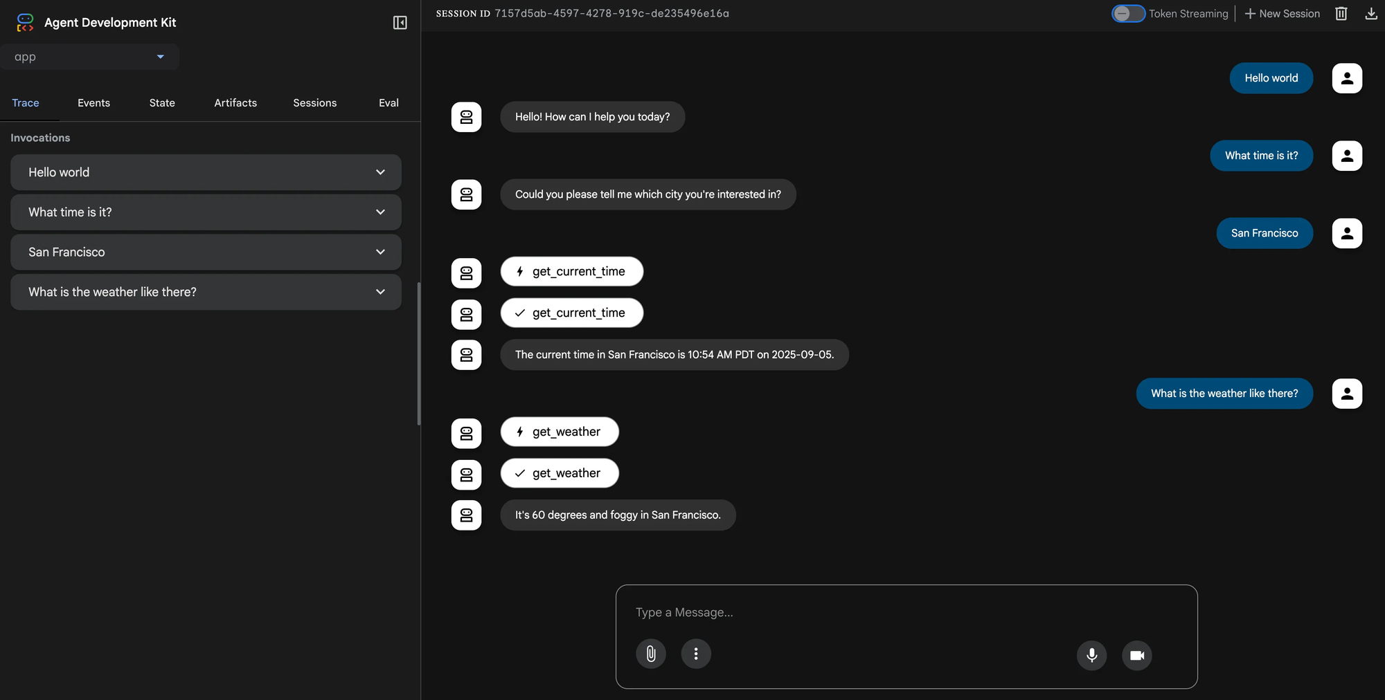 The ADK will hold a conversation with you and invoke it’s configured functions when you make a relevant request.